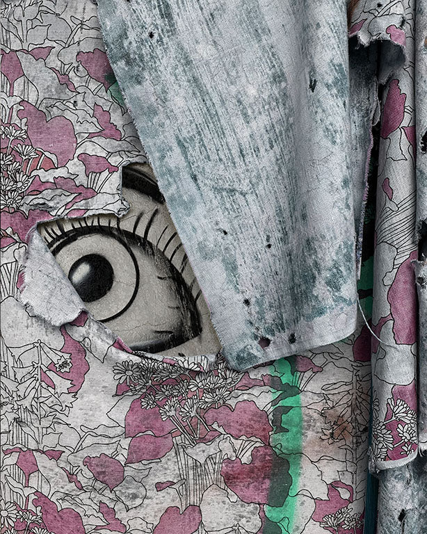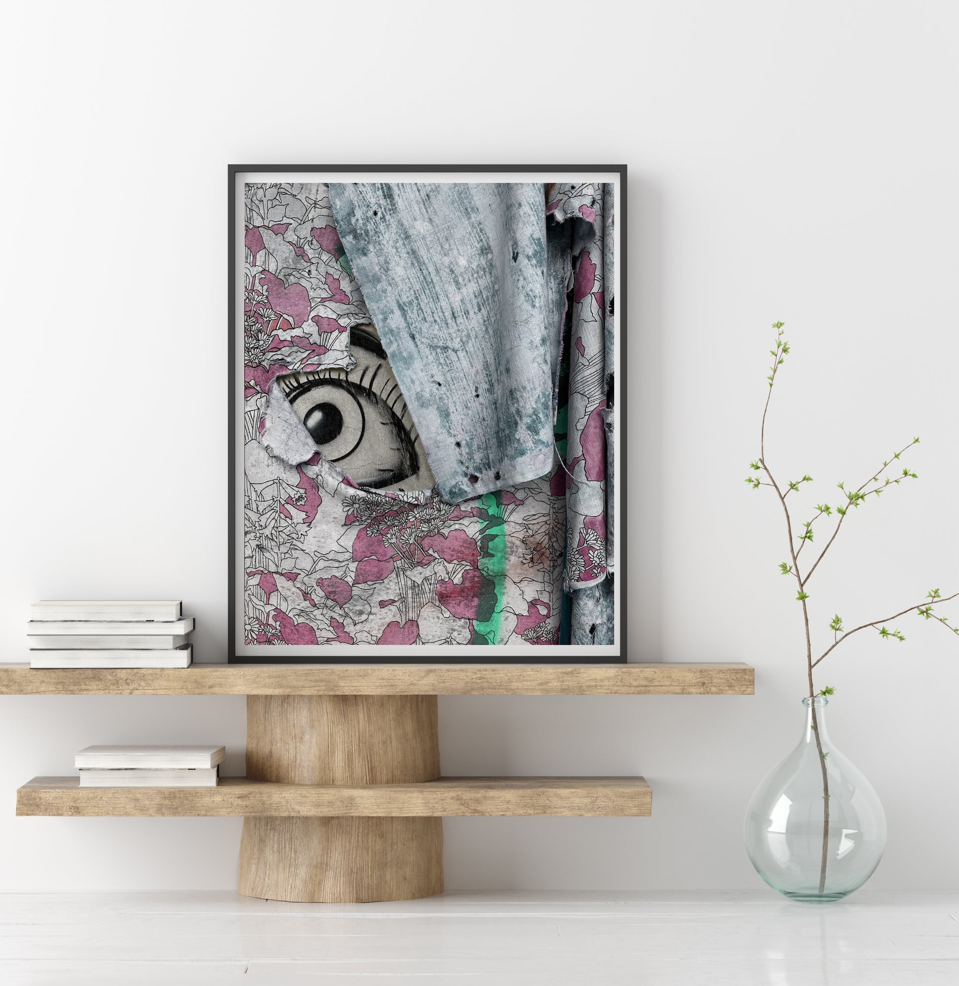 Somebody is watching you. Sharelost Homes created this digital artistic compilation from photographs and scans of weathered surfaces from an abandoned hotel in Poland. The beauty of decay and the imperfection of aged textures merge with creativity to form visually striking modern abstract art. This artwork is delivered in high quality and Hahnemühle Photo Rag paper. The print is produced on 100% cotton, fine-art paper (308 g/m2) with a matte finish. The surface has minimal texture with a chalky smooth cotton feel which creates smooth colour gradients.